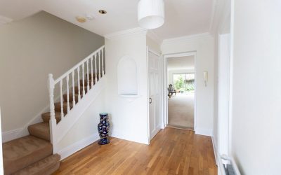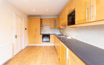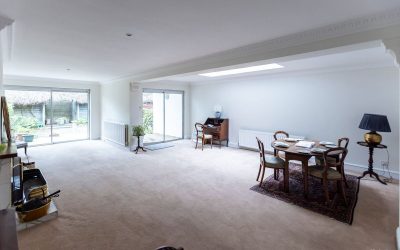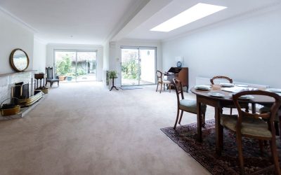 The thoughtful layout and carefully designed landscaping combine to create an attractive and well balanced front to back aspect. The hallway opens into an impressive fullwidth living and dining room with its original fireplace and finished overall to a high standard. Generous proportions, quality carpeting, and a thoughtful layout create a comfortable yet refined living space, while an extended section to one side provides a cosy nook ideal for a reading corner or additional seating area. The rear garden is south west facing and enclosed by attractive stone walls, offering both privacy and excellent afternoon and evening light. Designed for low maintenance living, the space is neatly landscaped with pebbled finishes and clean lines.